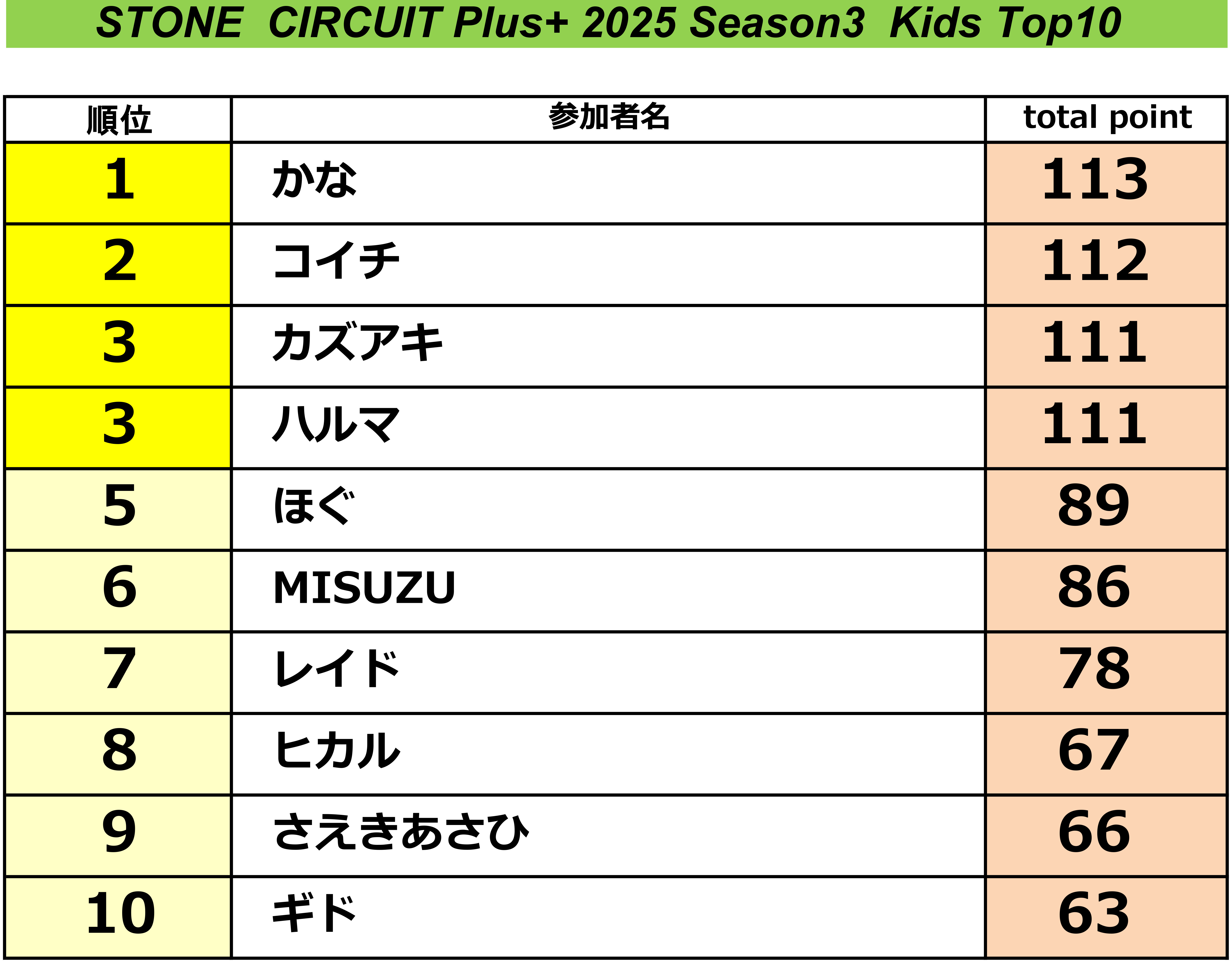 ウエストロック > イベント情報 > 未分類 > STONE CIRCUIT Plus+ 2025 Season3 Result