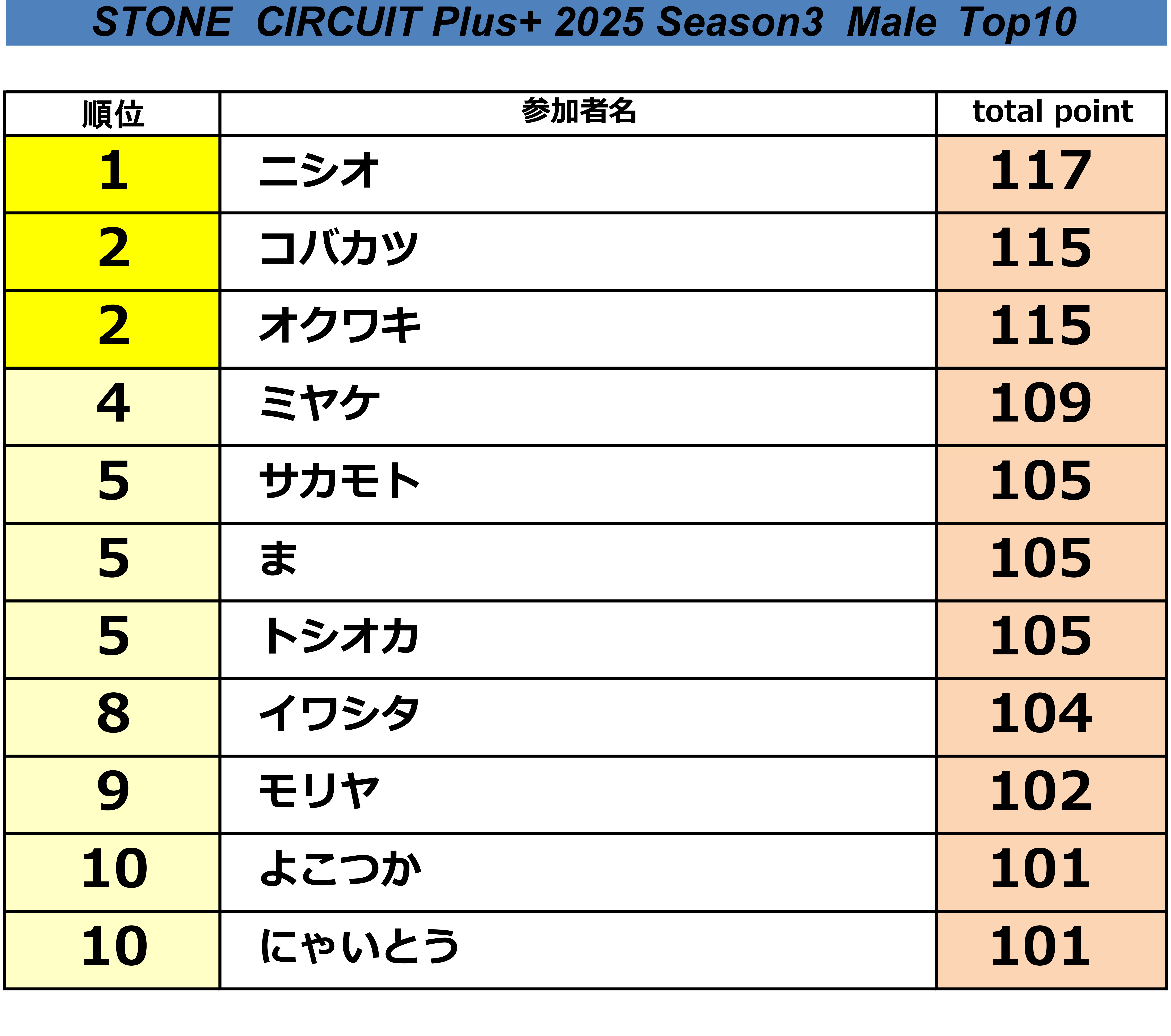 - STONE CIRCUIT Plus+ 2025 Season3 Result