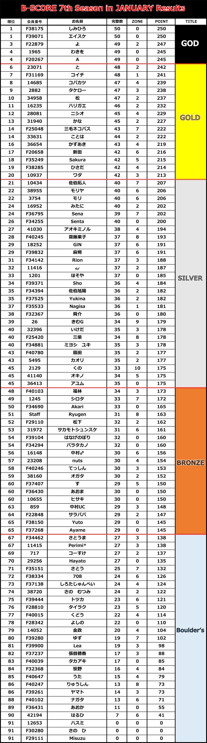 【B-SCORE 7th SEASON 】 January Result が出ました!