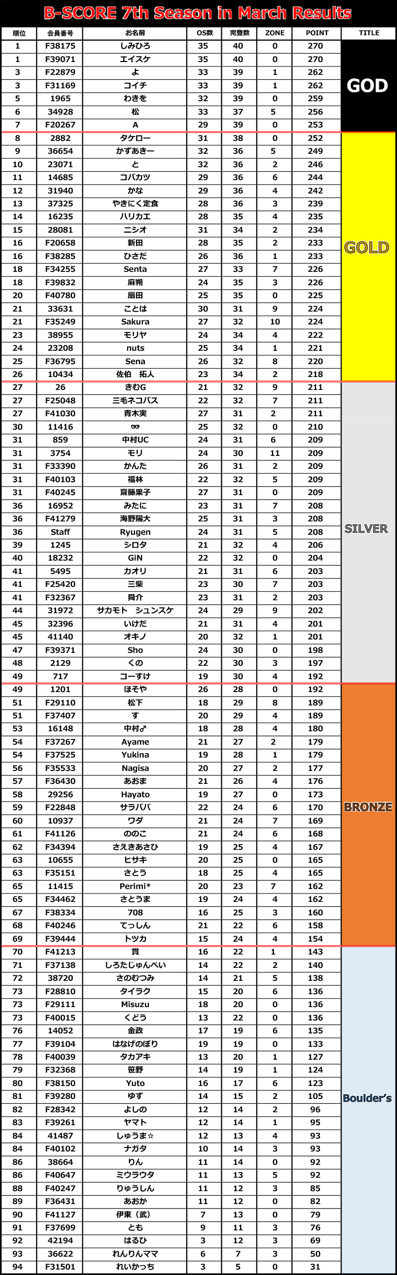 ウエストロック > イベント情報 > 未分類 > 【B-SCORE 7th SEASON】March Result