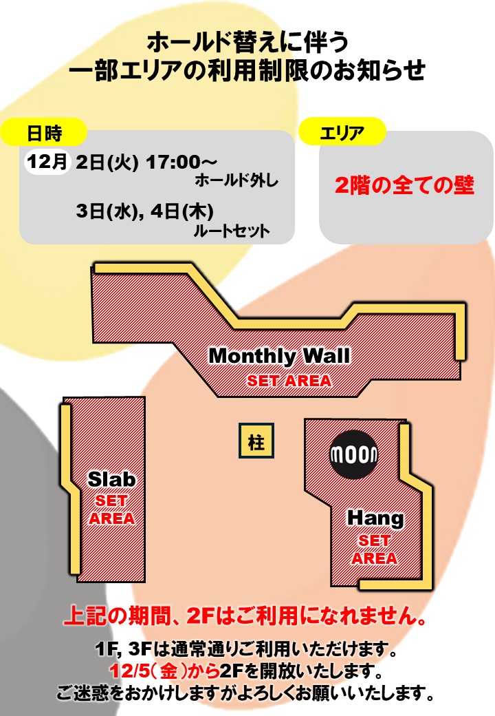 Moon Boardもご利用いただけませんのでご注意ください🙇