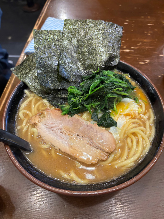 初めて行ったのですが、濃厚な豚骨スープにとき卵が入っているという面白いラーメンでした。