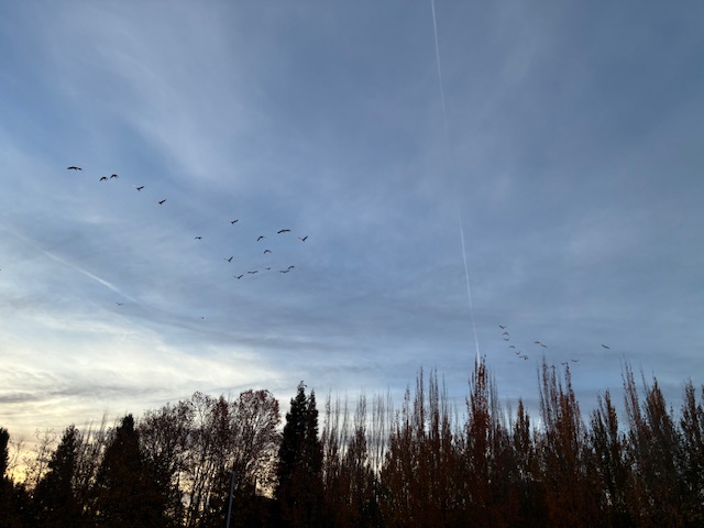 カモが綺麗なVの字になって飛んでた。