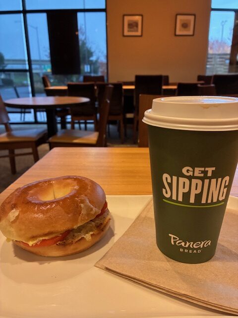 登った後はベーグル