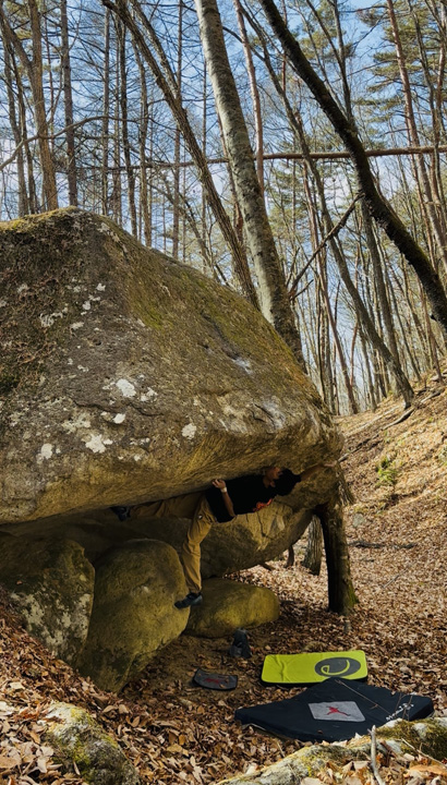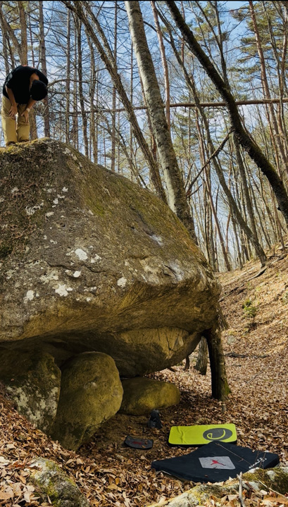 以前、2024年10月初版の瑞牆ボルダリングガイドが出たタイミングで、開拓者である室井登喜男さんをゲストセッターとしてお招きした際に聞いたお勧めの課題「路傍の石」をやりに行った。