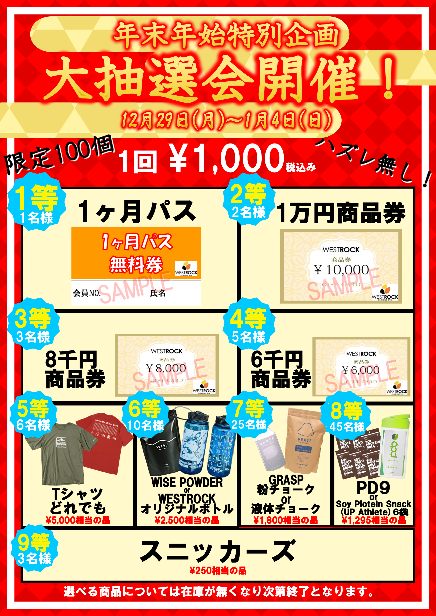 1回¥1,000円のくじ引きを今年も開催いたします!!