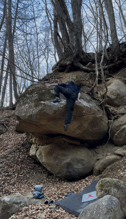 しかしこちらは返す際の足がめっちゃつるっとしていて手もすっぽ抜けそう、おまけに上部の木からくる土でさらっとしていて中々痺れるマントルに。