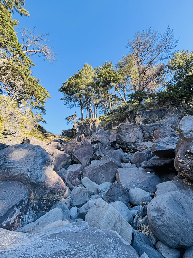 海により近い場所に岩があるからか、ホールドが潮風にさらされべとべとする笑