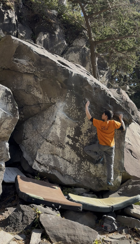 先月の第三週、仲間の岩初めで暖かさを求めて久しぶりの城ケ崎ボルダーに行ってきました。